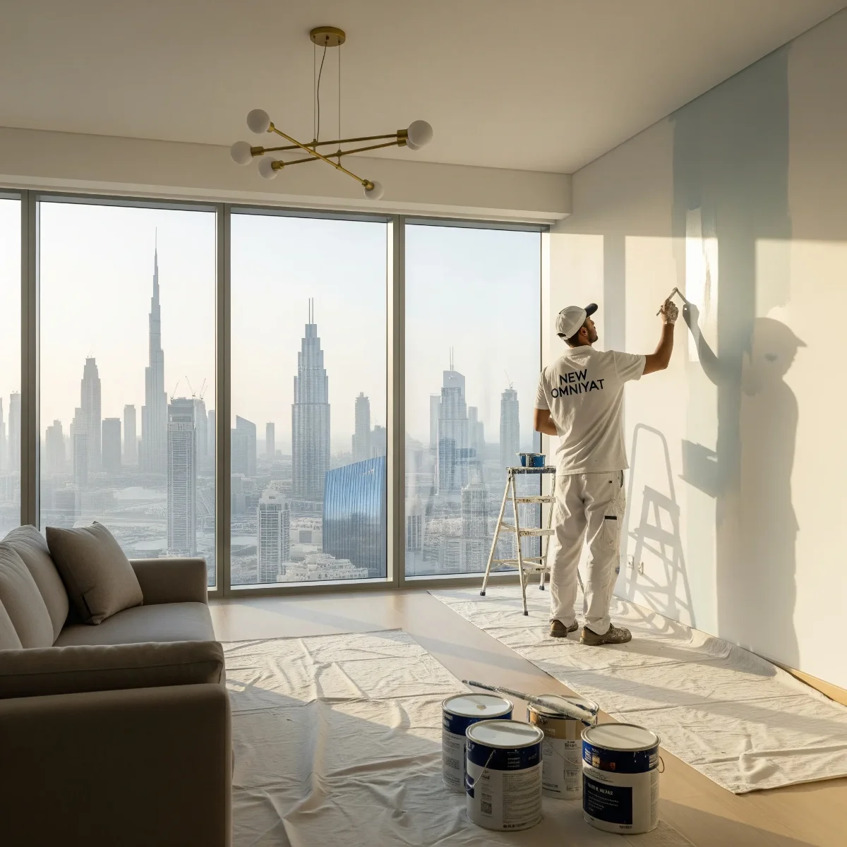 At New Omniyat, we provide professional apartment painting services across all major locations in Dubai, including Downtown Dubai, Business Bay, JVC, Dubai Marina, Deira, Al Barsha, Mirdif, and more.