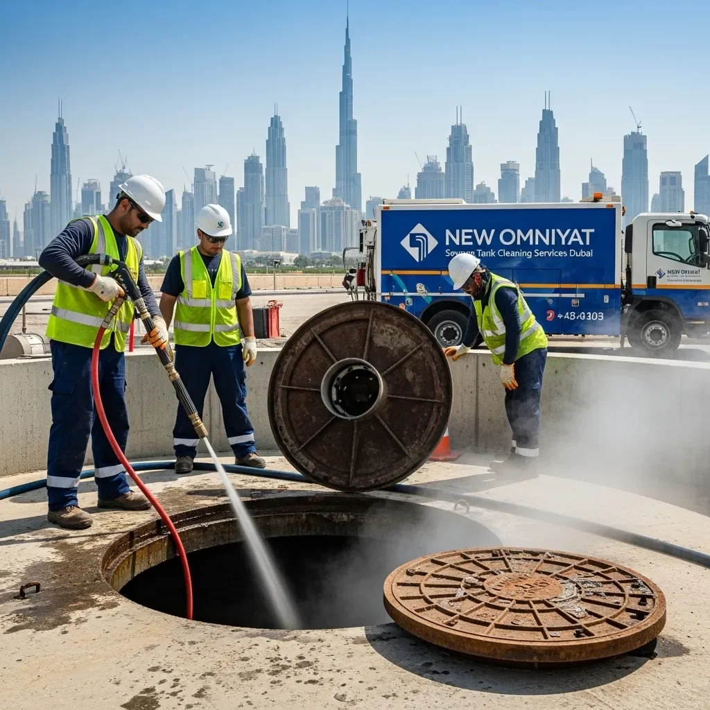 At New Omniyat, we’re always close by when you need reliable sewage tank cleaning services in Dubai. Our skilled team provides fast, affordable, and efficient sewage cleaning across the city — ensuring your property remains clean, odor-free, and compliant with health regulations.